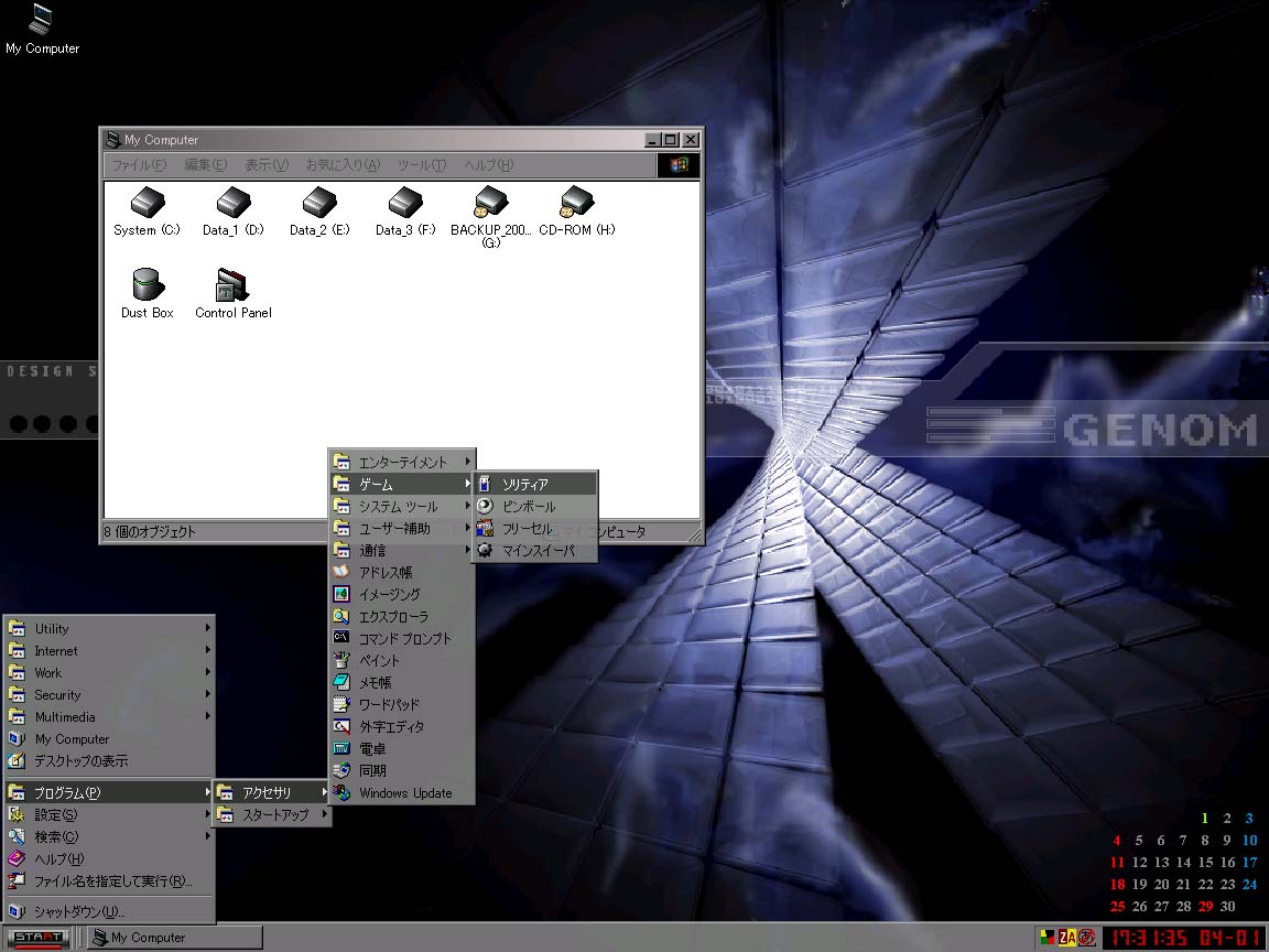 前者はスタートボタンとタスクバー、それと時計を改造するソフトで、後者はカレンダーを描画するソフトです(そのまんま)